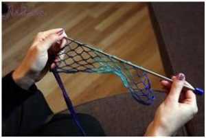 Расправим ленту медленно и аккуратно, ровняя ее и превращая в сеточку: