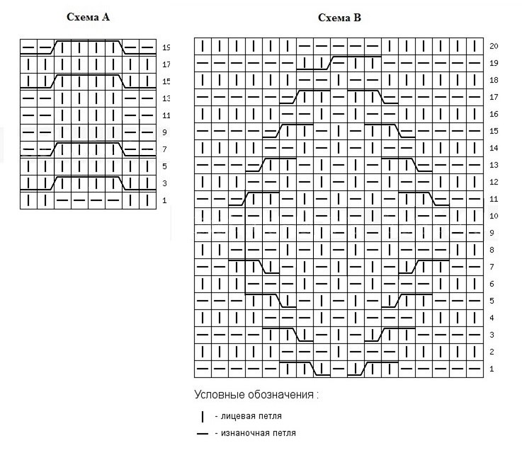 Эти 20-ть р. составляют вертикальный раппорт узора А; - узор – схема В: выполняем на 17п.: