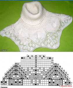 Форма его бывает круглая, треугольная или квадратная, а узоры плотные или ажурные. Этот урок рассказывает о вязании ажурных манишек спицами. При этом даже у данных моделей горловина вяжется плотной резинкой, потому они также предохраняют шею от холода, как и более плотные аксессуары. В статье для каждой ажурной манишки присутствует схема, подробное описание, либо то и другое.
