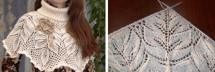 Вязание следующей модели изделия с ажуром выполняется спицами, и кардинально отличается от предыдущего образца не только по способу работы, но и визуально: