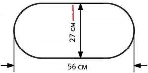Петельки набирать желательно двухсторонним способом, чтобы они были открытыми. Вязание может происходить, как на круговых спицах, так и на прямых. Только связав двойную шапку прямыми спицами, вам придется соединять ее швом на затылочной части. Начинать вязание необходимо с серединки изделия. На рисунке серединка обозначена красной линией. Итак, мастер-класс начинается. Наберите петли, которые вы должны рассчитать согласно объемам вашей головы. Такой метод расчета неоднократно описывался в статьях, которые имеются на нашем сайте. Затем вяжите тридцать семь сантиметров лиц. глади. Если ваша шапочка вяжется по кругу, тогда выполняйте все полосы лицевыми петельками. Если вы осуществляете вязание на прямых спицах, тогда делайте чередование рядов из изнаночных и лицевых петелек.