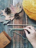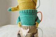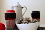 Для работы используйте кружки, пряжу интересных оттенков (несколько клубочков), спицы под пряжу, иголку с большим отверстием и различные декоративные детали.