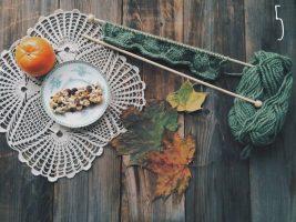 Для того, чтобы сделать такой оригинальный подарок на день бухгалтера, как чехол на чашку, нужно позаботиться об интересном оттенке нитей. В данном примере используют красивые осенние тона. Вы можете спросить о любимом цвете адресата и сделать подарок в его любимом оттенке. Что касается спиц, то чем меньшим будет их диаметр, тем будет большим будет плотность вязки.