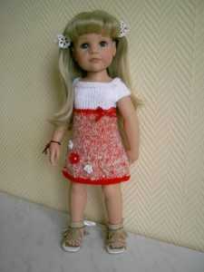 Начинающая рукодельница, молодая мама из Дании предлагает связать два великолепных платья для куклы Gotz ростом 50 см.
