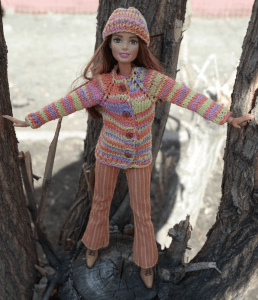 Для разных коллекционных игрушек, подруг и сестер Барби вяжут гардеробы на разное время года. И одну из осенних моделей представляет Тереза, лучшая подружка известной на весь мир куколки.
