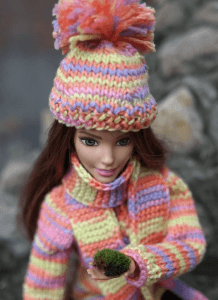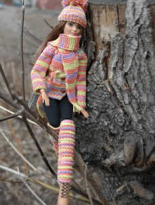 Привлекательность вязаной одежды Терезы в яркой меланжевой пряже, в крупной вязке и в соблюдении модных тенденций. Кукла ничем не уступает настоящим моделям с подиума, и надеть такой комплект захочет любая юная модница.