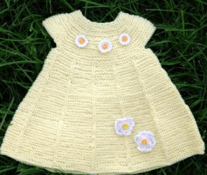 Начинающим можно попробовать связать летнее кремовое платье с нежными белыми ромашками.