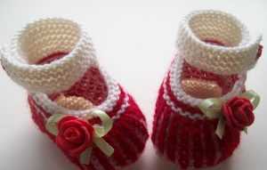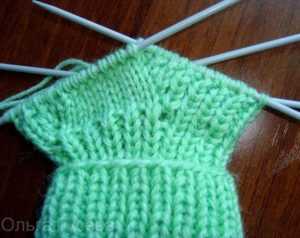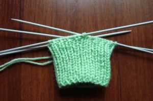- Вначале спицами вяжем резинку. Ее высота примерно 12 рядов, хотя можно сделать и больше, если вы хотите получить пинетки с более высокими манжетами.