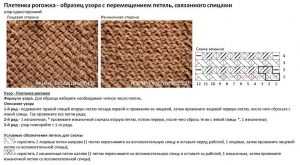 - Мы закончили работать над манжетами, переходим на мысок.Он формируется на 14 средних петлях. Выполняем на них 16 рядков, можно использовать любую схему. Для примера – схема плетеного узора.