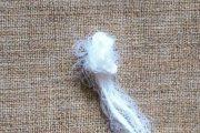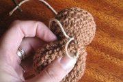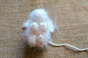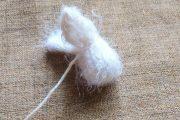 Возьмите одну из хлопковых нитей для того, чтобы сшить изделие. Оставшиеся нити спрячьте и обрежьте. Вам понадобится всего лишь пара ниток для пришивания четырех лапок и хвостика с ушками.