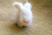 Первая поделка в виде маленького кролика к Пасхальной неделе, вяжется из особенной пряжи, которая как раз подходит для создания подобного рода изделий. Называется такая пряжа YarnArt Tecno и состоит она на сто процентов из полиамида (пятьдесят грамм на сто метров). Она имеет очень пушистую и мягкую текстуру. Кроме того, в данном примере для вязания кролика добавлена пряжа Titan Wool из хлопка (пятьдесят грамм на сто двадцать метров). Работа ведется в две нити. Так, связанное изделие получает хорошую, устойчивую форму.