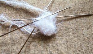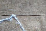 Работа над вязанием спицами кролика к Пасхальной неделе начинается с соединения двух видов пряжи. Для создания туловища, наберите на спицы шесть петелек. В первом ряду (р.) все звенья провязываются лицевыми. Далее распределите однородно все петельки на три спицы. Четвертой будет рабочей.