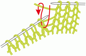 Второй способ частичного вязания подразумевает обвитие крайней петли.