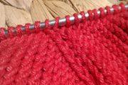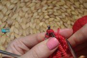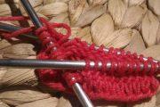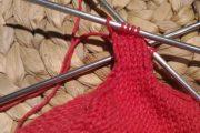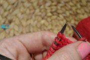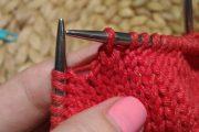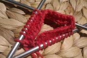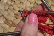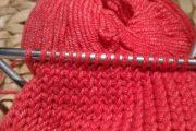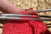 Начинаем работу красной пряжей. Наберем на спицы 30 П. Распределим их по трем спицам, по 10 П на каждую. Провяжем по кругу два ряда лицевыми.