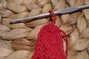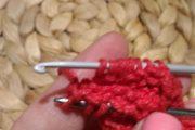 Гребешок петушка начинается с набора 6 П. 1-4 Р – жемчужный узор. 5 Р – закроем четыре П, дальше по рисунку. 6 Р – по рисунку. В следующем ряду закрываем петли.