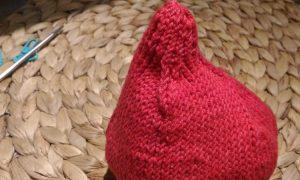 Для простого и вполне небольшого клювика петушка наберите 5 П. 1 Р – весь Р ЛП. 2 Р – вяжем одними изнаночными. 3 Р – 1 ЛП, три П вместе, так чтобы средняя П была по середине, снова 1 ЛП. 4 Р – вяжем снова одними изнаночными. 5 Р – три вместе лицевой. 6 Р – 1 изнаночная. Закрываем ее, и клювик петушка готов.