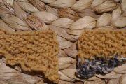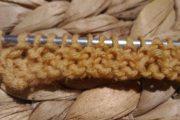 В третьем ряду на каждой СП нужно прибавить по одной петельке. Для этого отсчитайте пять П, а из шестой вывяжите две (одна вяжется за переднюю стенку и, не снимая П с левой спицы, из той же П вяжем за заднюю стенку). Теперь на каждой СП по 11 П. В четвертом Р вяжем только ЛП. 5 Р – добавляем на каждую СП по 3 П таки образом: отсчитываем три П и из следующей вывязываем две, еще через 3, а потом через 2 делаем также. Так на каждой спице будет по 14 П.
