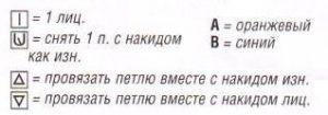 Лицевые ряды состоят из чередования одной изнаночной, одной лицевой и заканчиваются одной изн. Изнаночные ряды: петельки вывязываются согласно рисунка.