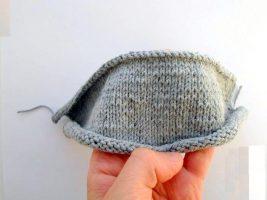 Летняя шапочка – повязка не позволит ушкам мальчика замерзнуть прохладным вечером, а также предотвратит потоотделение в жаркую погоду. Вам понадобятся спицы, крючок и серые хлопковые нити. В первую очередь вяжется сама шапочка, а козырек выполняется в конце. Наберите петельки на две спицы. Количество звеньев определите с помощью снятия мерок с головы мальчика. Затем следует связать полосу лицевыми петельками, а последнюю штучку изнанкой. Переверните изделие, не провязывая первое звено, выполните ряд изнанкой. Опять разверните спицы и свяжите все лицевые петли. Делайте такое чередование, пока не свяжите двадцать пять полос. Посмотрите на фото, как должно выглядеть ваше полотно с лица и с изнанки.