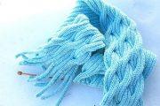 Для того, чтобы связать спицами данный шарф с косами, приготовьте пряжу определенного оттенка. В данном примере использованы нити с люрексом. Также вам понадобятся спицы под номером три и добавочная спица, которая поможет вам в формировании переплетающейся косы.