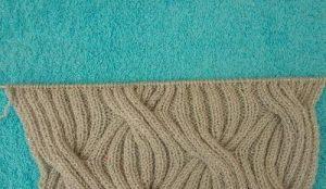 Если говорить о плотности вязания, то она составляет десять на десять сантиметров = десять петель на двенадцать рядов узора «косы».