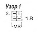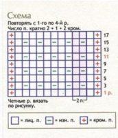 мотив №1, ширина которого составляет 2п. Начинаем работу спицами под номером 3 в соответствии со схемой, на которой указаны только лиц.и изн. рядочки. Петельки в раппорте дублируем: 1 + 2 р.