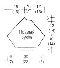 Сделав 12см (14см) от реглана во всех последующих 2 р. справа закройте 1Х4 (6Х3) и 5Х2 (1Х2);