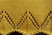 Кайма находится на краю полотна, а поэтому она иногда скручивается. Чтобы избежать этой неприятности, в структуру желательно внедрять узор резинка или платочную вязку. Можно сочетать эти два узора, что тоже не позволит появиться закручиванию полотна. В уроке мы предложим вам схемы, описание, и технику выполнения спицами различных видов каймы. Между нижней и верхней группой существует одно очень важное отличие, и оно является принципиальным. Нижняя разновидность при вязании спицами должна быть немного сужена, а верхняя кайма при выполнении расширяется. Еще одна особенность нижней каймы в том, что до начала работы определяется нужное количество петель (П) того полотна, в котором она вяжется. Затем считается то количество зубцов, которое будет точно соответствовать длине полотна. Когда закончены все эти расчеты, приступают к выполнению работы. В уроке находятся некоторые фото, схемы и описания, по которым вы легко свяжете любую кайму из тех, что изображены на фото.
