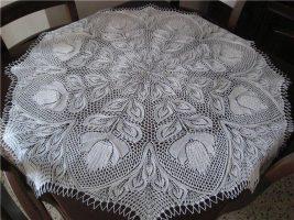 Для эластичности скатерти, лучше брать тонкие нитки и спицы №2,5 или 3.