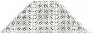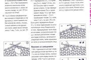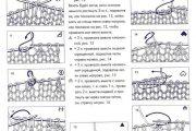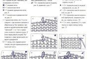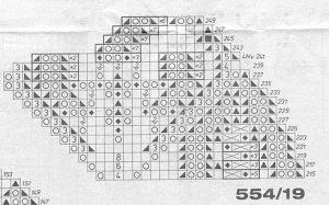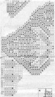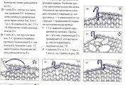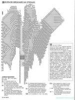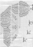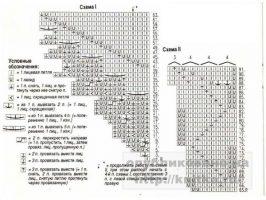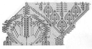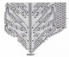 Далее, схема работы следующая: вяжите в КР со сто сорок пятого по сто шестьдесят второй 128 раппортов, КР со 155 по 162 – как со 147 по 154. В КР со 63 по 194 провяжите по тридцать два раппорта в р. Провязав сто девяносто четвертый КР, захватите одним СТ БН одну, две, четыре, пять или соответственно шесть п., выполнив среди них одну, четыре, семь, восемь или соответственно двенадцать воздушных п. (на схеме – это числа курсивным шрифтом среди дуг). В промежуточных КР или соответственно изн. р. все п. вывязываются согласно рисунка, накиды провязываются изн., в изн. рядах – изн., два близлежащих накида вяжутся как одна лиц., одна изн. В ходе увеличения размера вязаного полотна скатерти, замените одни спицы на другие большей протяженности. Закончив вязания заключительного КР, можно закрывать все петельки при помощи крючка. В это случае, вам нужно захватить одним СТ БН такое количество звеньев, какое указывает число над дугой. Среди столбиков, свяжите воздушные петли, как показывает схема.