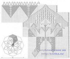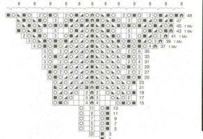 Прежде всего, наберите восемь п. и распределите их по четырем инструментам. Дальше соедините вязание в круг. Теперь, работа продолжается, как указывает схема в круговых р. (КР) с первого по тридцать восьмой по восемь раппортов, в КР с тридцать девятого – по шестнадцать раппортом в ряду. Продолжайте вязание КР с сорок пятого по шестьдесят второй. Как сорок третий и сорок четвертый рр. В КР с семьдесят пятого по восьмидесятый и со сто тринадцатого по сто восемнадцатый узор выполняют во всех КР.