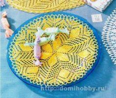 И последний, но не менее интересный вид скатерти для вязания спицами – это замечательный пример в ажурном мини формате.
