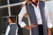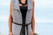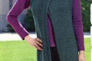 Итак, предложенный удлиненный жилет для женщин вяжется спицами в начале со спины.