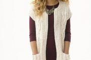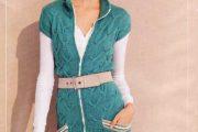 Кроме того, в тоже время провязав тридцать четыре сантиметра (восемьдесят полос) от планки, закройте в правом крае для скоса горловины 1Х1 п., потом 10Х1 п. во всех восьмых рядах (8Х1 – в шестых, 4Х1 – восьмых) 2Х1 – в четвертых, 12Х1 – шестых.