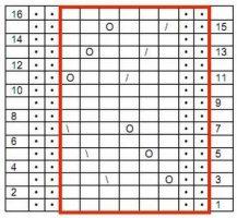 Суть данной схемы очень проста. Вам нужно взять спицы маленького размера и набрать на них число кратное двум. Это будет ширина шарфа, к которой необходимо добавить еще две петли для создания красивой кромки. В данном варианте их будет 32. На вязаный шарф основа набирается очень аккуратно, чтобы впоследствии внизу была ровная аккуратная косичка.