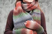 Такой набор будет замечательно смотреться из теплой пряжи, которая будет чудесно греть вас холодными зимними днями. Кроме того, что такие женские шарфы выглядят очень мило и приятно, они еще и отлично греют благодаря своему объему.