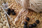 - 10 крупных деревянных бусин, контрастного цвета, чтобы не сливались с пряжей. Они могут быть выполнены из любого материала, но деревянные не тяжелые, и отвечают современным тенденциям на все натуральное;
