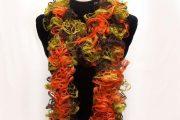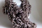 Шарф из ленточной пряжи – это аксессуар, который,даже самый строгий образ, превратит в романтичный и женственный. Им можно дополнить брючный костюм с жакетом, или удлиненным жилетом. Также, он идеально впишется в модный ныне бохостиль. Надев его с длинной юбкой и свободной туникой, Вы создадите прекрасный богемный образ, слегка расслабленный и загадочный. Шарф, связанный из темной пряжи с люрексом, подойдет для вечернего образа. Им можно дополнить декольтированное платье в пол, и отправиться в театр, или ресторан.