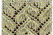 Шаль спицами нужно начинать вязать с нижнего угла. Наберите семь петелек и вяжем первую линию ажура по схеме номер № 1. Узоры на схеме вяжутся в четных рядах, пока раппорт не достигнет сорок второго ряда. Далее вязание полотна нужно закончить согласно узора с тридцать третьего ряда и до конца. Если линия не четная, тогда петельку вяжем изнанкой. Если в процессе работы, петли постоянно слетают со спиц, можно перенести изделие на круговые спицы в тот момент, когда изделие станет широким. Следует сразу же связать такими спицами следующую линию.