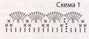 Лицевая гладь вяжется спицами следующим образом: все лиц. ряды выполняются только лиц. петлями, а изнаночные ряды вяжутся такими же петлицами. В платочной вязке следует провязывать лиц. и изн. ряды только изнаночными петельками. Обвязывание крючком будет происходить по представленной схеме.