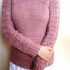 - Теперь начнем вязать рукав, набирая сиреневой пряжей 84 П. Вяжем техникой спинки. Делая расширение, прибавим с двух сторон в каждом 6 ряду по 1 П, и делаем эти прибавления 7 раз.