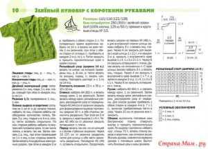 - После передней полочки вяжем спинку пуловера для девочки, набирая 74 П пряжей зеленого оттенка.