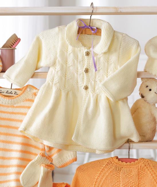 Пальтишко подойдет на 1 (2, 3) голика и, соответственно, его размер составит 64 (66, 70) см. Длина готового изделия – 39 (43, 48)см, рукав – 24 (26, 28) см.