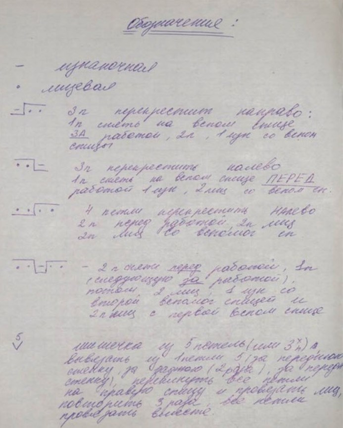 - 1 р. (лицо): 4 (6, 5) и. п., с2б, *6 и. п., с2б*, от * до * до последн. 4 (6, 5) п., 4 (6, 5) и. п.