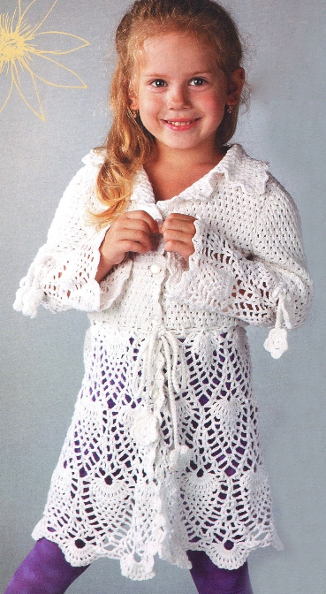 Ажурное легкое пальто для девочки крючком на 5 лет