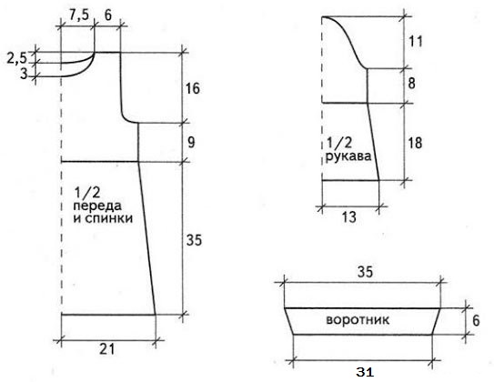 Начиная с лицев. рядка, вяж. лицев. гладью до тех пор, пока кол-во рядков не сравняется с половинками переда до формировки плеча.