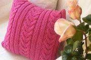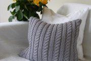 Следующая подушка на Андреев день вяжется с выпуклым узором. Размеры те же, что и в предыдущем варианте. Для вязания приготовьте пряжу из шерсти основного оттенка EXTRA MERINO BIG, восемьдесят метров на пятьдесят грамм. Остальные инструменты такие же, как и в первом случае.