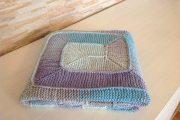 Первый вариант подушки на Андреев день представляет собой изделие со своеобразным узором в клеточку. Размеры: сорок на сорок сантиметров. Для работы использована шерстяная пряжа EXTRA MERINO BIG, восемьдесят метров на пятьдесят грамм, спицы для кругового вязания под номером семь (шестьдесят сантиметров в длину) и одна застежка в виде молнии (тридцать сантиметров в длину).