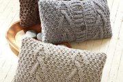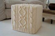 Такой чехол для пуфа обязательно понравится бабушке и дедушке. Ведь все мы знаем, что пуфик в основном используют для уставших ног. Поэтому данное изделие будет актуально в виде подарка. Для работы используют пряжу из акрила в два сложения. Вам необходимо выполнить вязание орнамента, рисунок которого будет приведен в статье. В нижней части чехла располагается простая резинка два на два. Приготовьте пять мотков нити и круговые спицы под номером № 9.