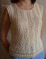 Казалось бы, летний сезон и вязаные вещи не совсем совместимы. Но, если это будет коротенькая маечка или легкий ажурный топ, то почему бы и нет. В этом случае стоит лишь подобрать подходящую пряжу, красивый узор, вооружиться спицами и приступить к работе. Сегодня мы предлагаем вам для вязания летний топ с красивым витиеватым узором.